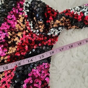 B. Darlin Long Sleeve Open Back Pattern Sequin Pull-On Dress. Size Small…