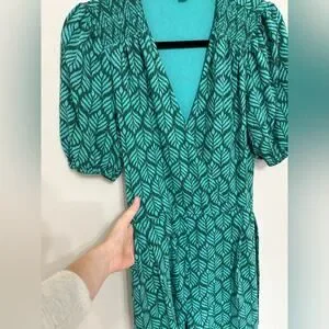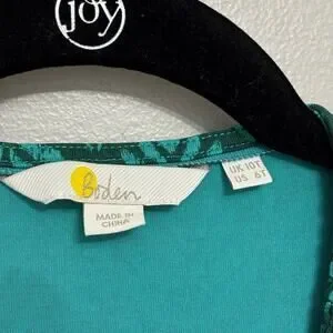Boden Ruby Jersey Puff Sleeve Tie Waist Romper in Palm Leaf - Size US 6 Tall