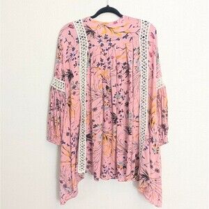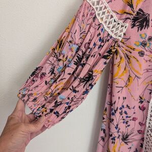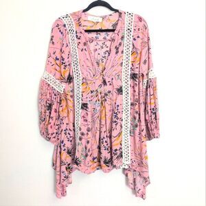 Chicwish Boho Floral Crochet V-Neck Pink Tunic S/M Romantic