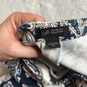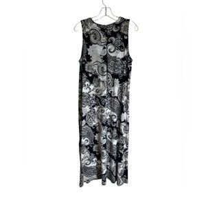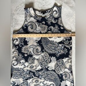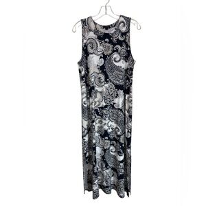 J. Jill Navy & Cream Paisley Sleeveless Maxi Dress Side Slits Size M