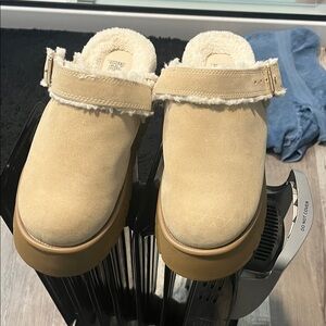 Stylish cream clogs with cozy shearling lining. Features an adjustable buckle for a perfect fit. Wild Fable brand, maybe worn once, like new.