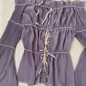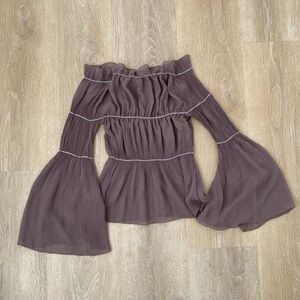 This elegant brown off-shoulder top features a stylish design perfect for any occasion. The semisheer fabric and flattering fit make it a must-have addition to your wardrobe.