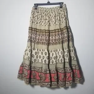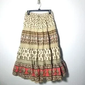 Bohemian Gypsy Tiered Skirt, Fully Lined, 100% Cotton, Very Good Condition