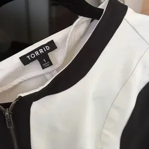 Chic Torrid top with a bold black and white contrast. Features a front zip closure. Size 1 Torrid