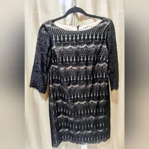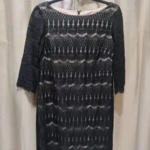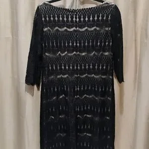 Jessica Howard Black Lace Dress with 3/4 Sleeves Size 12P