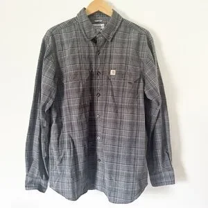 Carhartt Men's Relaxed Fit Casual Button Down Shirt Gray Plaid L