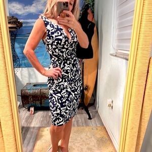 💙ADRIANNA PAPELL, Gorgeous Split Neck Watercolor Floral Sheath Dress, Like New