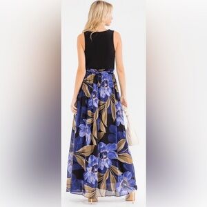 Stunning new with tags HYFVE floral maxi dress featuring a flattering wrap-style bodice and flowing full-length skirt. Designed with a sleeveless top, elastic waist, and adjustable tie belt for a feminine silhouette.