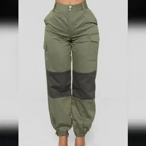 Fashion nova high waisted colorblock cargo pants color olive size Large