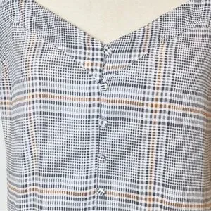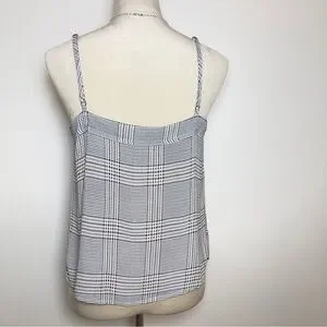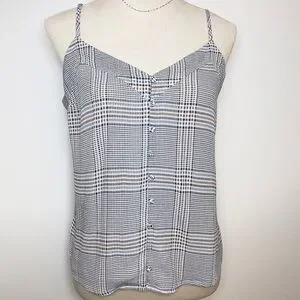 Abercrombie & Fitch plaid cami in women’s size medium. Features a button-front design, adjustable spaghetti straps, and a lightweight fabric. Excellent pre-owned condition, no flaws noted.