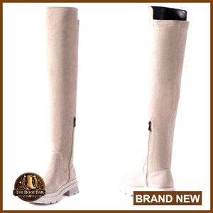 Over The Knee Combat Boots, Suede, Platform Lug Sole, Side Zipper