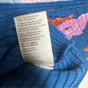 Stylish floral dress with a tie-front design. Features vibrant pink and orange flowers on a blue background. Perfect for casual outings.