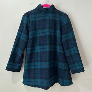 Tuckernuck Blackwatch Faye Plaid Wool Ruffle Neck Bow Back Blouse Top Sz S NWT