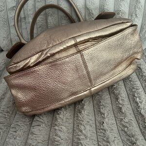 ✨ Iconic Chloé Paddington satchel in a rare metallic rose gold / champagne leather. This vintage early-2000s It-bag features the signature chunky hardware, ribbed padded front panel, and multi-zip bowler silhouette that made the Paddington a fashion classic.