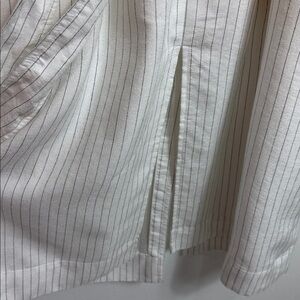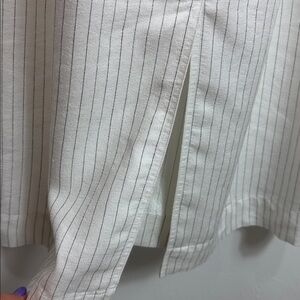 Vince Pinstripe Linen Blend Midi Dress Self Belt Pockets Slit Front Size 14
