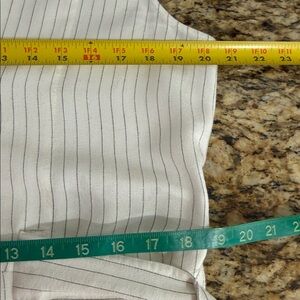 Vince dress size 14, pinstripe midi dress, sleeveless v neck dress, tie waist midi dress, tailored summer dress, office midi dress, minimalist work dress, quiet luxury dress, women’s Vince clothing, striped sheath midi, polished brunch dress