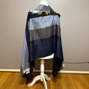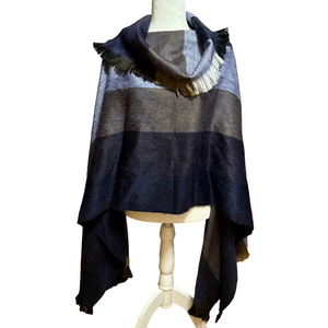 Artesanias Mishell Alpaca Cowl Neck Poncho Navy Blue & Gray Colorblock