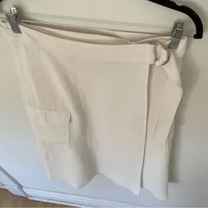 Aritzia Wilfred Hana Skirt Cream White Crepe high-rise cargo wrap midi skirt Medium