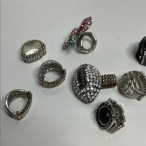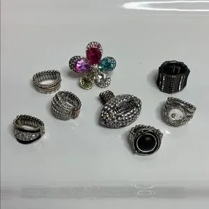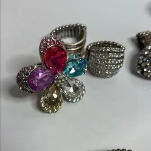 Bundle Silvertone Stretchy Crystal Rings