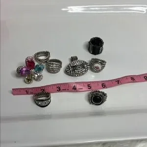 This stunning ring set features a variety of colors including pink, blue, and silver, perfect for adding a touch of elegance to any outfit. Each ring is designed with intricate details and sparkling crystals.