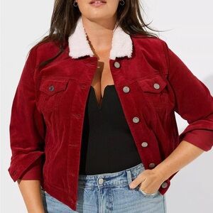Torrid Rhubarb Red Corduroy Sherpa Collar Trucker Jacket 1X 40990043