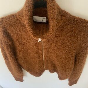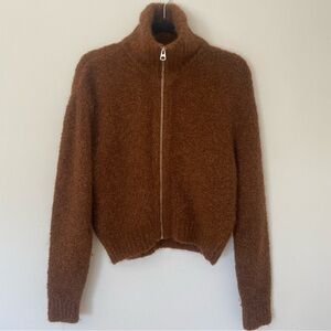 Aritzia Wilfred Free Zip Up Sweater Brown Funnel Neck size Small