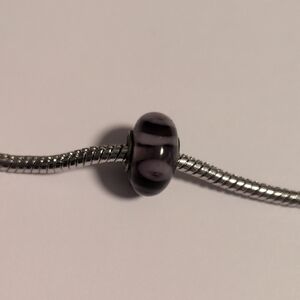 Silver Purple Glass Charm for Pandora Style Bracelet Brand Unknown, not Pandora Brand can be used for any bracelet similar to Pandora, Chamilia, Trollbeads and European Charm Bracelets, Necklaces, Keychains, or Designable Pens