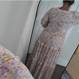 Eloquii- One of my absolute favorite dresses, worn twice! Gorgeous floral print, pull on stretchy fabric. Tiered ruffle hem, v-neck, balloon sleeve. In excellent preloved condition