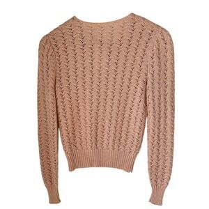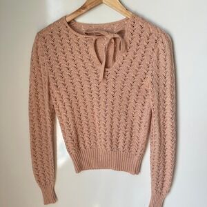 Vintage 70s Pointelle Knit Sweater Blush Coquette Cottagecore Balletcore XS