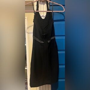 JOVANI Sz 0 Black Halter Semi Formal Bandage Dress with AB Rhinestones