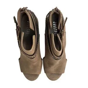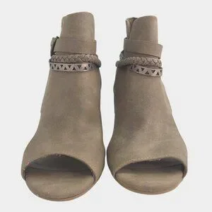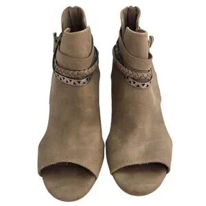 Jellypop Tenley Womens Taupe Peep-Toe Booties Block Heel Braided Strap Zipper 9M