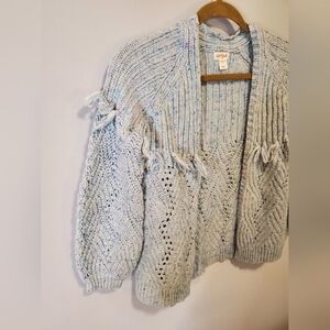 Cute Cat and jack Cardigan, youth medium with fringe, confetti colors, balloon sleeve