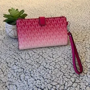 NWOT Michael Kors Ombre Pink Zip Wristlet Clutch Wallet Dragonfruit Pink