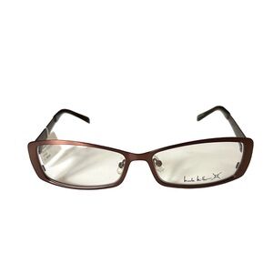 Elegant Nicole Miller glasses in a deep chocolate brown. Ideal for a sophisticated look.