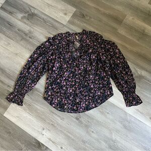 Free People Meant To Be Blouse NEW Black Purple Floral Feminine