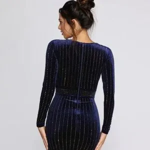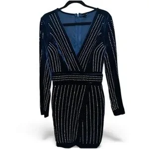 Windsor Alexa Velvet Studded Wrap Mini Navy Blue Dress Size Medium