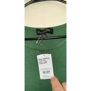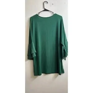 Brand new Suzanne Betro tunic. Hunter green color. Size Large. Has cool pleated ruffle three-quarter sleeves. Still has tags on it.