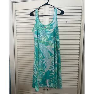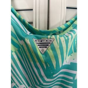 Columbia PFG Freezer III Tank Dress Cooling UPF 50 Blue White Leaf Size XXL