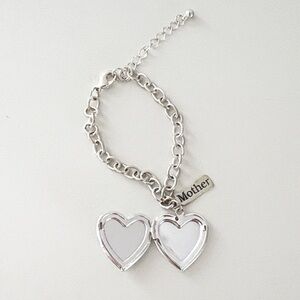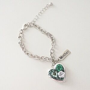Elegant silver bracelet featuring a heart locket charm with 3-D floral and crystal accents. Perfect for gift to Mother💚💚
