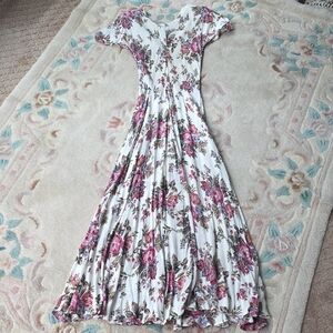 Chic Floral Maxi Dress in White and Pink