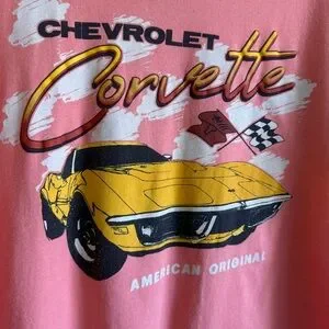 Vintage Style Yellow Corvette Graphic Tee Pink Size Large 12/14 GM Official