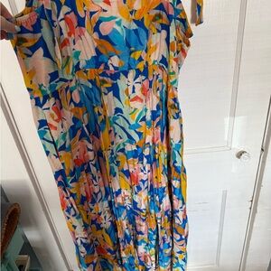Embrace vibrant style with this stunning floral maxi dress. Perfect for any occasion, this dress features a beautiful blend of blue, pink, and yellow hues. Ideal for adding a pop of color to your wardrobe.