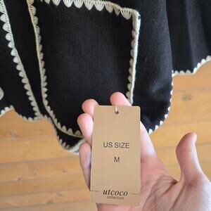 Utcoco Boutique Cardigan Jacket Cassidy Tonal Black Cream NWT M Coatigan