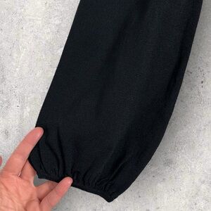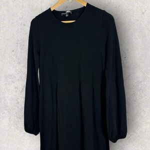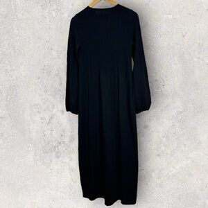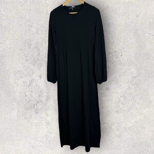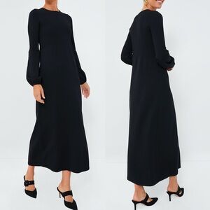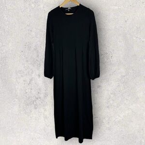 Tuckernuck Pomander Place Black Double Knit Lennox Dress in Women's Size Medium. Retails for $168 USD (approximately $234 CAD). As cozy as a sweater and as chic as a dress, the Lennox will take you from clocking hours at the office to holiday cocktail parties with a quick switch of accessories. Crafted from a double knit fabric that's ultra slimming and even more comfortable, this minimalistic maxi is ready to be dressed up or down with its blouson sleeves and textured bodice details. Pair it with flats and gold hoops for effortless styling and a casual cool vibe, or dress it up with heels and a clutch. Crew neckline. Long blouson sleeves. Button cuffs. Smocked chest and arms for extra slimming look. Maxi length. Double knit fabric. 63% rayon and 37% nylon. Hand wash. Made in China. Very good pre-owned condition. No visible flaws but note that care tag is faded.