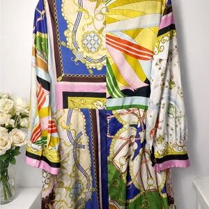 Zara Satin Print Shirt Baroque Chain Patchwork Mini Colorful Satin Dress Size LG