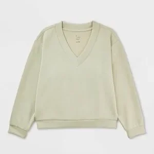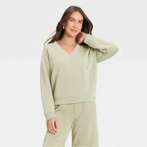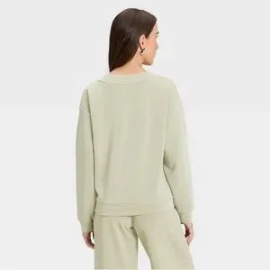NWOT A New Day Sandwash Sweatshirt V Neck Pull Over Light Green Small Athleisure