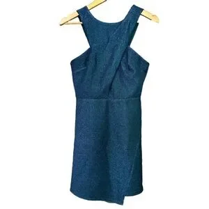 Topshop blue sparkly sleeveless mini sheath dress Size 6 EUC