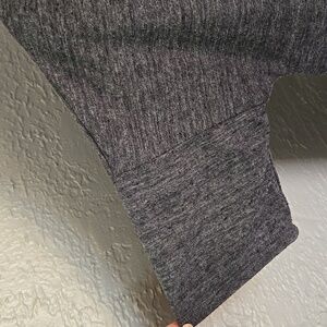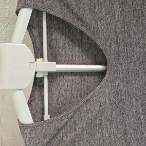 This relaxed gray tee from Old Navy features a comfortable fit with short sleeves, making it a versatile addition to your wardrobe. Crafted from a soft, breathable fabric, it offers a casual yet stylish look for everyday wear. It is tunic length, has a rounded high low hem and a round neckline. There is pilling throughout.