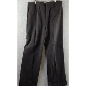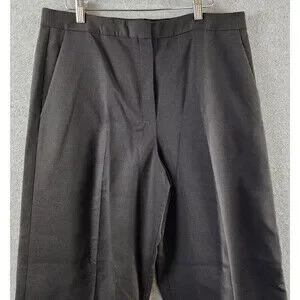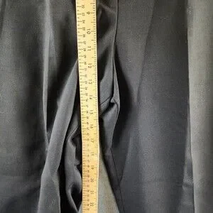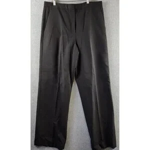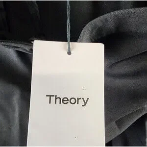 The Theory Wool Blend Wide Leg Clean Terena K Pants in women's size 12 are sleek black dress pants with a zip fly closure and high rise. Made from a blended fabric of polyester, polyurethane, and wool, these pants feature a wide-leg style and pockets for convenience. The versatile design makes them suitable for casual occasions in the fall, winter, and spring seasons, adding a touch of classic elegance to any outfit.