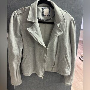 LC Lauren Conrad Heather Gray Asymmetrical Zip Puffed-Sleeve Moto Jacket, Large